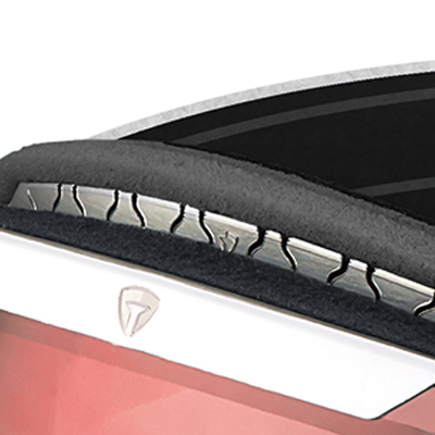 フレクサシステムが顔の輪郭へのフィット性を向上。ヘルメット対応クローを付属。